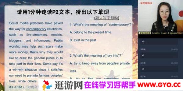 学而思-顾斐 高一英语 2020春季目标985班直播(全国) 百度网盘 下载,本课程由逛游网 GYO.CC收集整理。