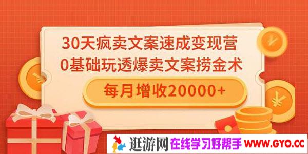 雨涛-30天疯卖文案速成变现,0基础玩透爆卖文案捞金术 百度网盘 下载,本课程由逛游网 GYO.CC收集整理。
