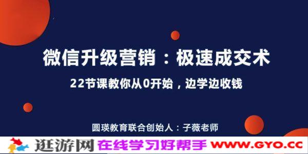 子薇-微信升级营销《极速成交术》22节课从0起步边学边收钱 百度网盘 下载,本课程由逛游网 GYO.CC收集整理。