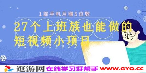 上班族也可做的27个短视频小项目 1部手机月赚万元 百度网盘 下载,本课程由逛游网 GYO.CC收集整理。