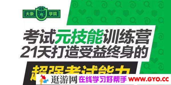大象学院《考试元技能训练营》21天打造超强考试能力 百度网盘 下载,本课程由逛游网 GYO.CC收集整理。