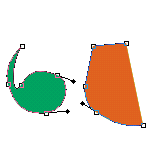 注意:对于开放型路径,系统将自动以直线段连接起点与终点。同时,一条由两端点构成的一次贝赛尔曲线即直线段,不能进行单独转换,基于同样的原因,一条由多个节点组成的一次贝赛尔曲线组(还是直线),也不能进行转换。