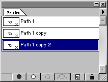 新建路径层工具的另外一个作用是快速完成路径层的复制工作。如果需要得到一个已经存在的路径层的副本,则可以直接将此路径层列表条拖动至新建路径层工具图标处,释放MOUSE左键后即可完成复制路径层的工作,我们即得到一名为[PATH 1 COPY,内容与PQTH 1完全相同的新路径层。如图: