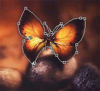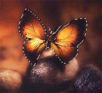 我们已经勾勒出其中的蝴蝶的外围路径,为了将此路径转换成选择区域,只需要首先选中其中的PATH1层,然后单击此路径转换为选择的工具图标