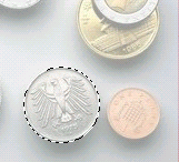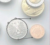 第一步如图,先用圆形工具快速大致地圈选所需鹰洋: