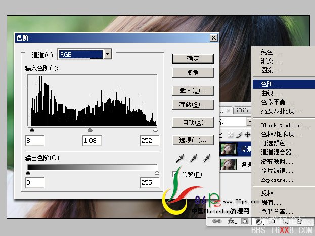 2、先建色阶调整图层,调整图片的明暗效果.