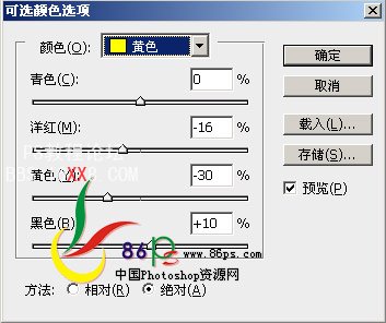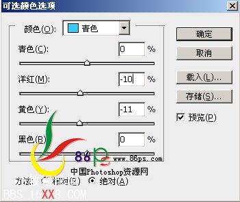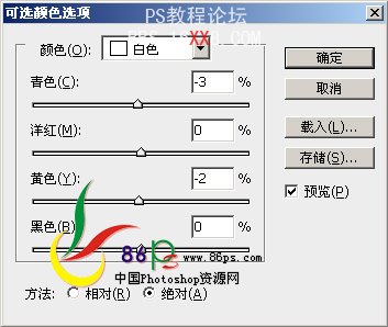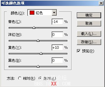7、建可选颜色层,调整如下: