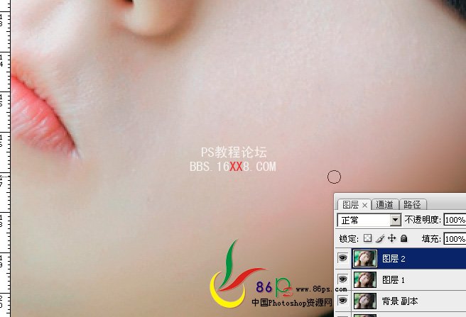 磨皮,我只是用修复画笔等把几颗大痘痘去掉,脸边的抓痕磨了一下。