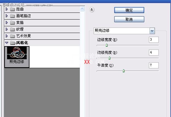 4、选择其中一个文字图层,滤镜_风格化-照亮边缘