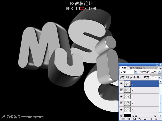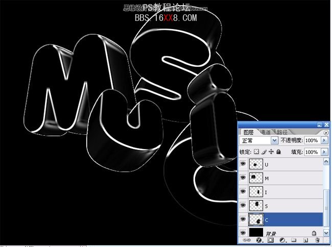 3、打开PS,填充黑色背景,依次拖入制作的3D文字,去色