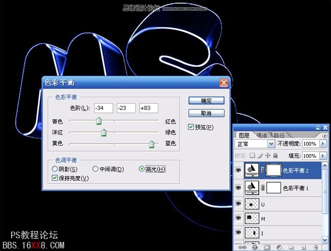 7、继续添加调整色彩平衡图层,设定高光数值(见图示)