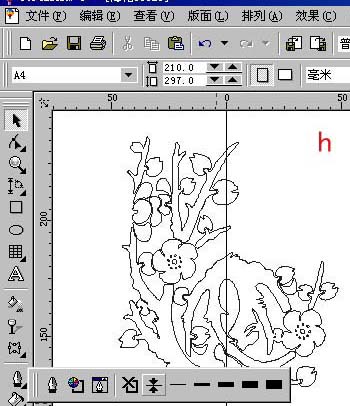 8.打开coreldraw软件,将刚才保存的.ai 文件导入进来,咦?为什么导入进来什么都没有呀?不用急,点取轮廓工具按钮并点取“细线轮廓”,出来了吧!一个崭新的矢量图就这样完成了。随便怎么放大都很清晰,特别适合做图形、图案以及电脑刻绘的朋友们。试一试吧!!