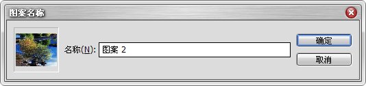 图案的定义过程很简单,打开一幅图像,用矩形选框工具选取一块区域,如下左图。然后通过【编辑>定义图案】就会出现设定框,可输入图案的名称。如下右图。确定后图案就存储了。