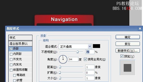 原教程中没有的步骤,为了让字体有一点突出感,我加了点投影,细微的变化