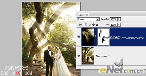 这样我们完成了这个婚纱照片添加光线效果的制作,这种方式可以使很多婚片具有更炫的效果,你可以用自己的照片去试试,那样你的相册又可以多一些养眼的照片了。