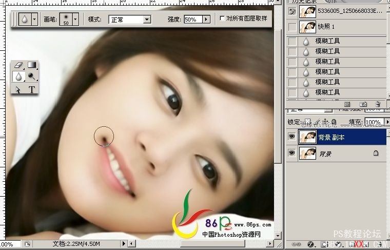 3、再用模糊工具将全部模糊一下,我用不好涂抹工具。