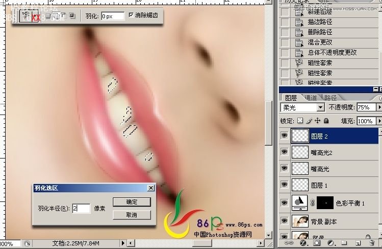 20、用索套勾出牙齿上的反光位置,羽化一下。