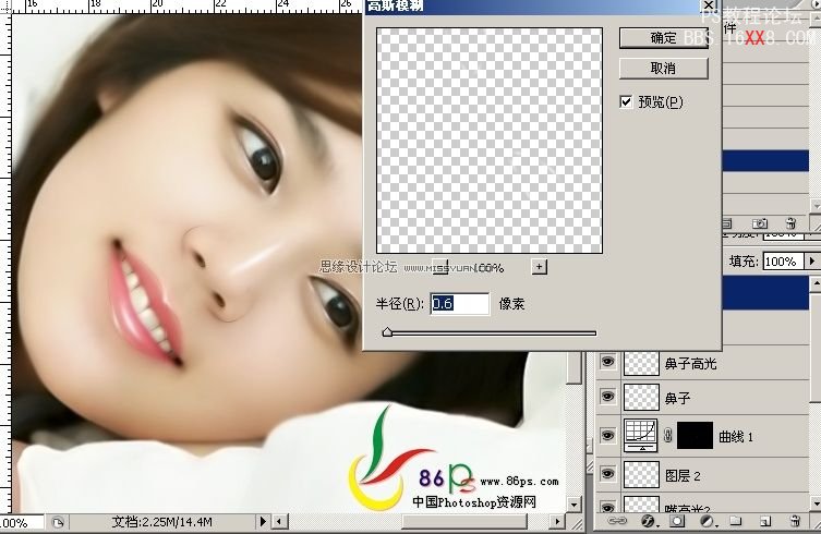 24、再画鼻子上的高光,用白色,画笔设成8像素,新建图层,描边。