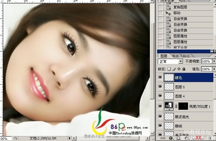 34、睫毛我实在不会画,就用的笔刷,刷上去再Ctrl+T变形就好了。