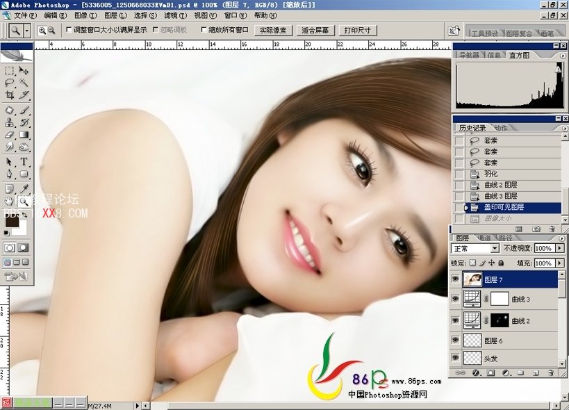 最后再用曲线调整一下整体颜色,盖印图层,就完成了。