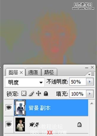 复制图层(图层>复制图层或Ctrl+J),并将新图层的混合模式改为“明度”。