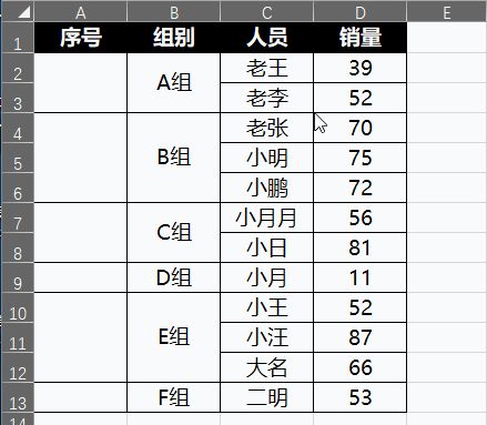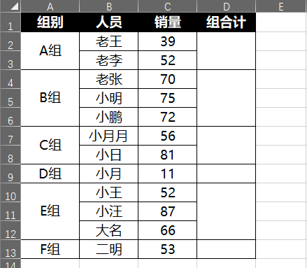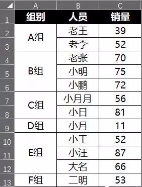 要掌握合并单元格对于新手来说也没什么难度,例如做出这样一个表,组别使用了合并单元格,老板对效果很满意。
