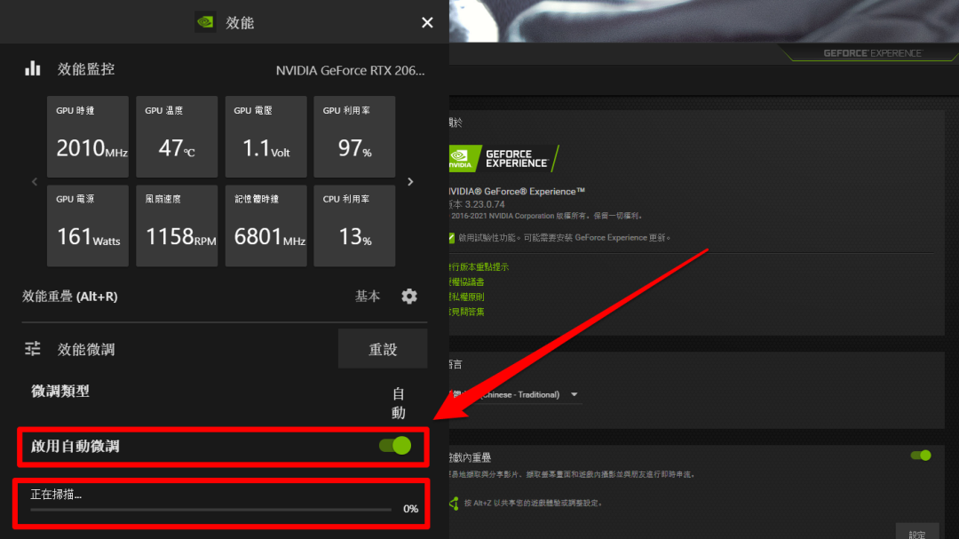3、这里我们将实验性功能选项打开,如果显卡驱动比较早的伙伴这里可能会自动更新显卡驱动。